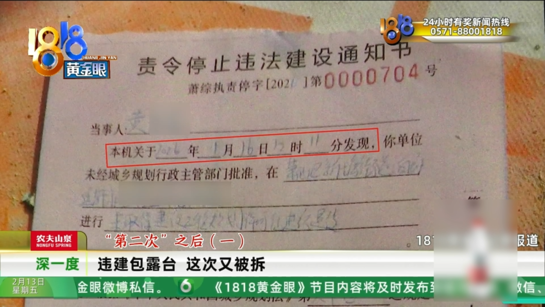 杭州萧山区综合行政执法局新塘中队 平副中队长:拍照取证了,他们也在建设过程中,所以开具的是一样的文书,叫做《责令停止违法建设行为通知书》,并且我们也把情况告知给了街道。我们也跟业主沟通过,让他们近期的话赶紧开展自行整改。