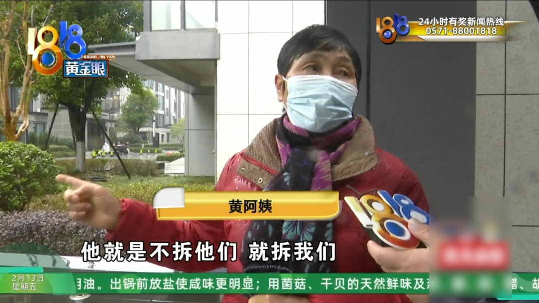 黄阿姨的大女儿:为什么他们不用拆?他们说他们已经入住了,这个要立案的,属于历史遗留问题。